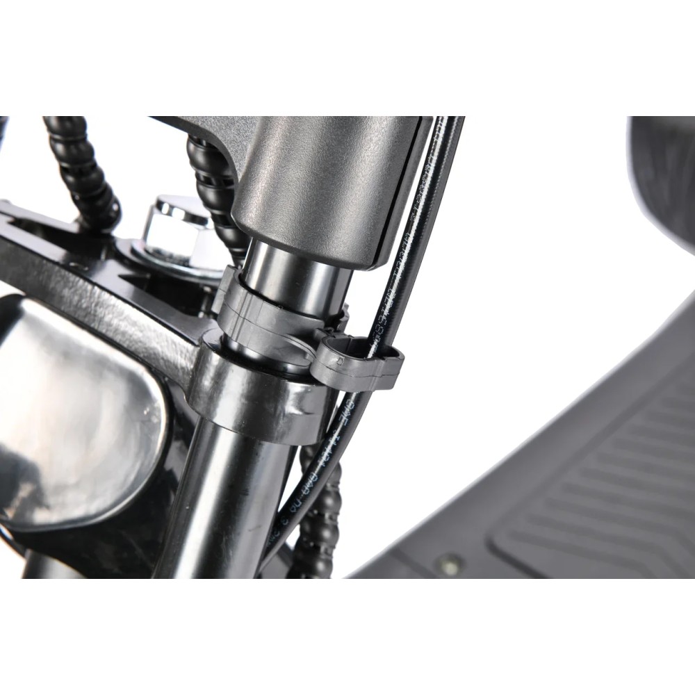 На руле находятся кнопки зажигания, переключения передач и управления. На WS-Pro 3000W Trike+ черный расположены два вида тормозов – гидравлические и дисковые, первые сзади, вторые спереди. Инженеры усилили систему амортизации, поэтому езда становится безопаснее и комфортнее.